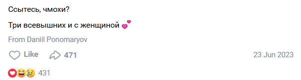 Так что будет очень хорошо, если сработает. Уже достаточно крупных подконторских личностей получило информацию о родне анатолия, мизулина точно отреагирует - у нее целая лахта - команда. Анатоля мечтал бомбить мирное население, желал страдания каждому россиянину? Хорошо, тогда в этот список войдет и мамаша его шлюшки, пусть хавает слезки и истерики наркоманки "а маму защооо чмук это ты винават".