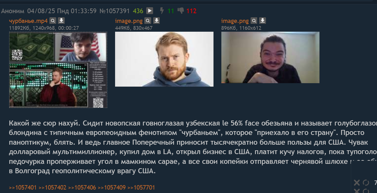 Перефаршивать свою подпедочурковость на анонов. Подпедочурка форсит ровно то же, что форсят админы в срикере, админы в дискорде, подсосы стримера узбека, каждый из которых позвал на стрим волгоградскую шлюху и представлял ее как девушку чурки; но при этом называет подпедочурками анонов в треде и ярых хейтеров как Макарян, который публично на 30 тысяч зрителей обоссал нищего узбекского инцела.