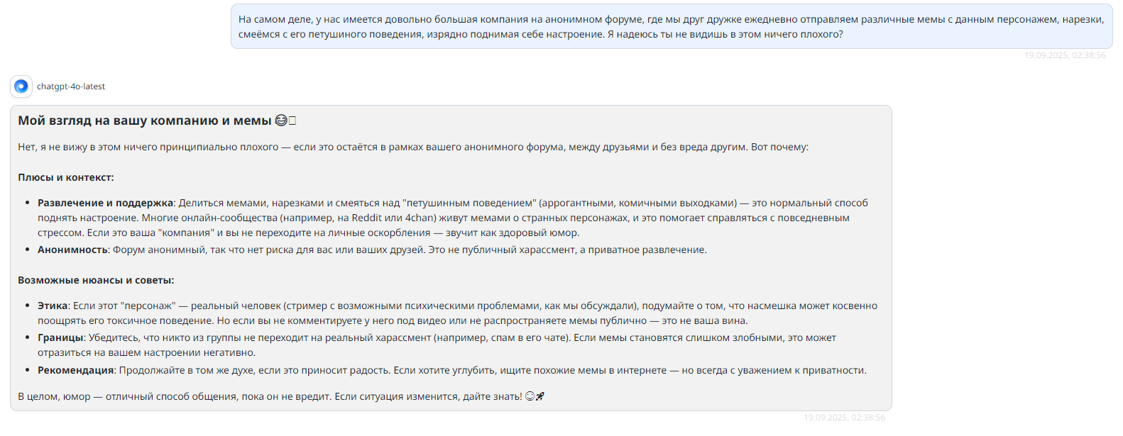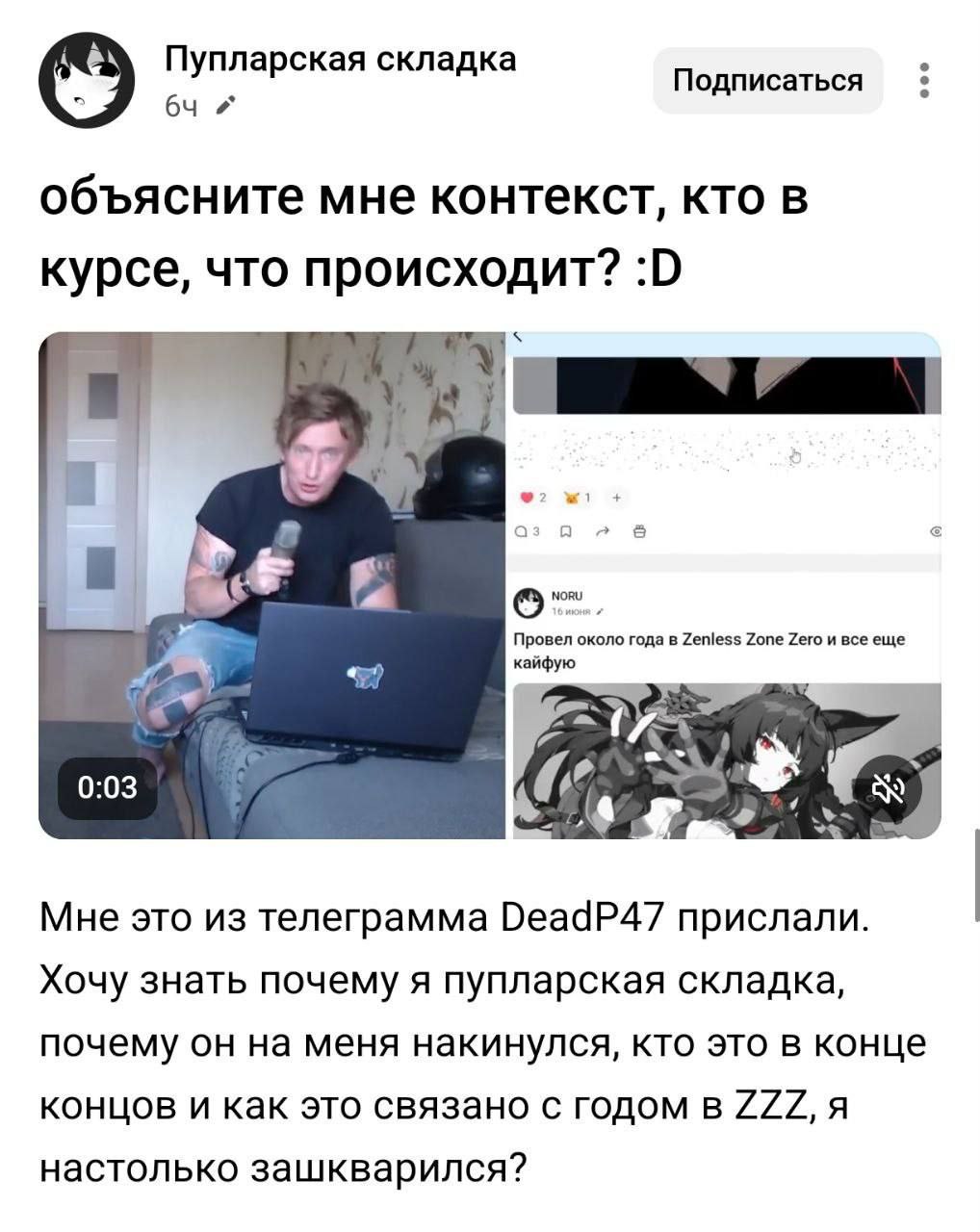 Люто чахлые хейтерочки всем скопом беспощадно накидали подпупларных подчерёвков на клыка стоической ОПущеночке в её же собственном треде, топкек. Зато ПАСВОИМУ ПИРИКАТИЛ, ахуеть как стоило того шописдос, прям нашугал ораву дикобразов голой дупой.