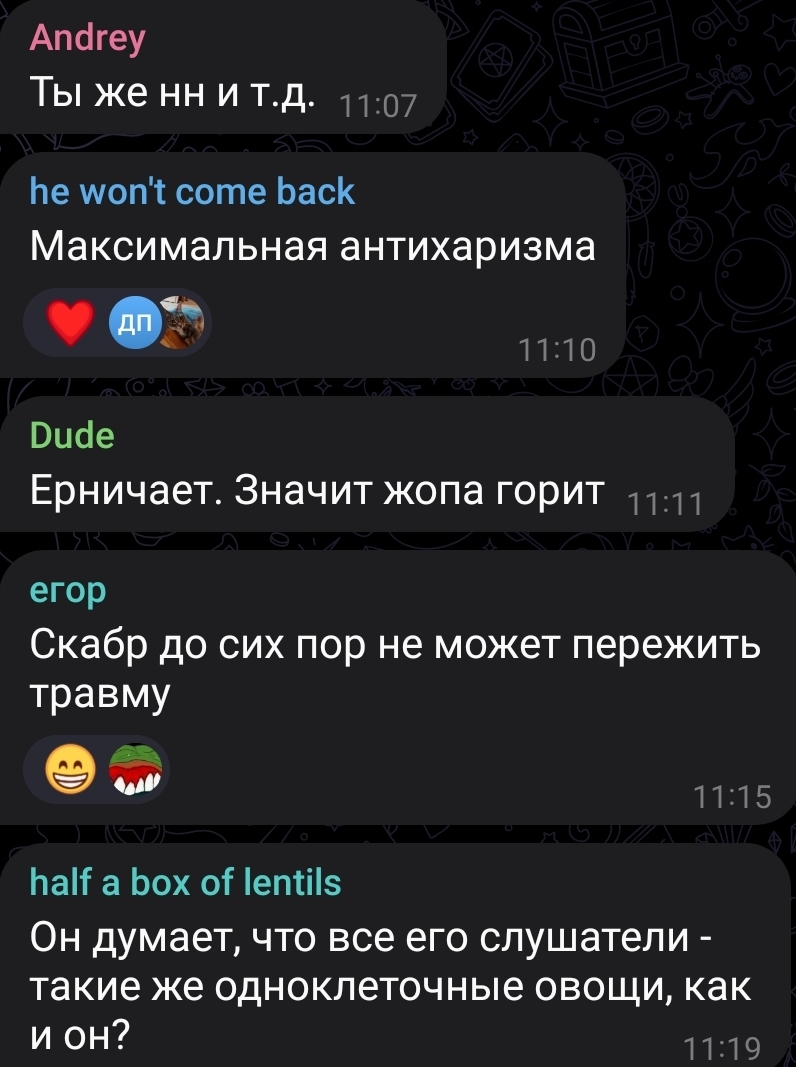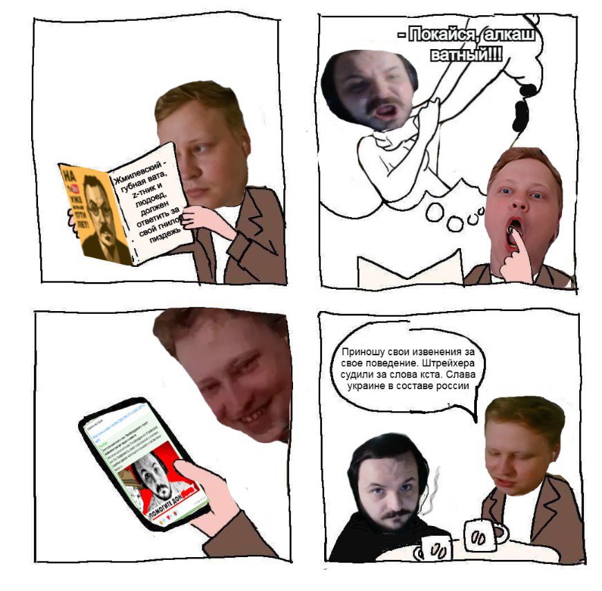 То есть чтение этого треда, задает в голове Обрезлости, с лицом рыбы капли, шаблон нарратива, который нужно использовать для унижения пидорах, которые ему донатят.