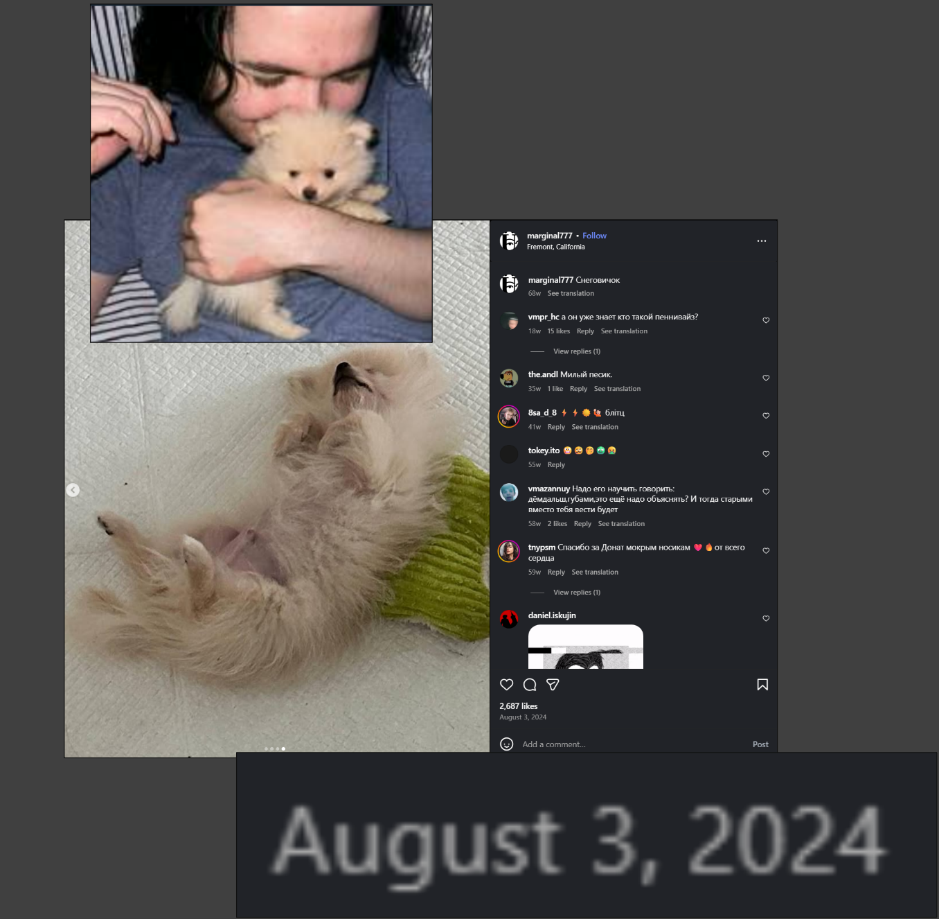 Олень сабж отправляет бабки солевой шмаре, которая 10 лет разводит таких скуфов инцелов как он. Сама она его куколдит с 2 метровым чедом. Аноны много лет с этого угарали, но год назад в тред пришло перефорсное животное подсос сабжа, который начал форсить шизу, что она на самом деле с ним, потому что у нее на стене разноцветная тряпка и у него на стене разноцветная тряпка, у них у обоих наушники air pods (неиронично вот такая тупость выдается за пруфы). Месяцы напролет он форсил, что она с сабжем в США, но недавно шмара спалилась, что сейчас чиллит в Панаме со своим чедом и в США она никогда не была, заруинив весь переможный форс.