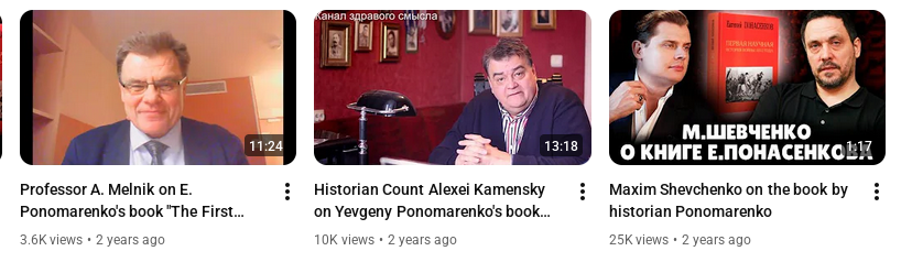 Книга Евгения Понасенкова "Первая научная история войны 1812 года" (издана в 2010 году, переиздана позже) позиционирует себя как всесторонний научный анализ Отечественной войны 1812 года. Однако она широко критикуется за значительный объём нетематического контента — лирических отступлений, философских размышлений, личных мнений автора, саркастических пассажей и обсуждений тем, не связанных напрямую с военными событиями (например, критика русской культуры, автобиографические вставки, общие историософские выводы). Факты и обоснование процента