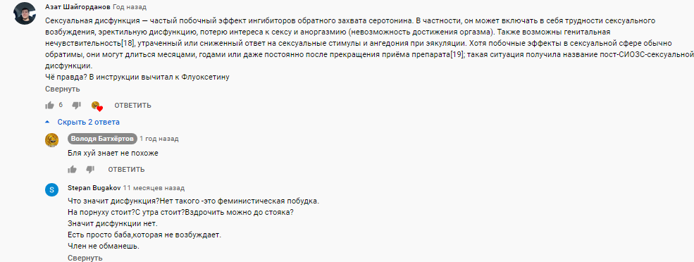 https://www.youtube.com/watch?v=lNduHvjReJI Он точно хотя бы фармацевт? Сейчас бы СИОЗС которые даже в инструкции часто кладут либидо и стояк на лопатки, жрать ради дрочки, пиздец