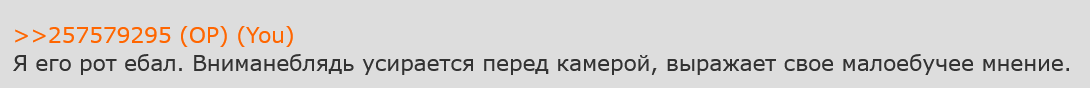 А умеет он только так: "РЯЯЯЯ вы сторчитесь от наркоты или умрете. Вы все несчастные чмошники. Я не бомблю, а доминирую. Всем хейтерам ебало набью, а слабо мне в лицо это сказать? УУУ сука, инцелы. Тайд - это ваш единственный шанс. РО вам не светит. Када вы убедитесь, что я прав, то убьетесь об стёну (повторить все сказанное к каждому посту). Ну вот и все, надеюсь я отрабал донат. Передавайте за проезд, сектанты."