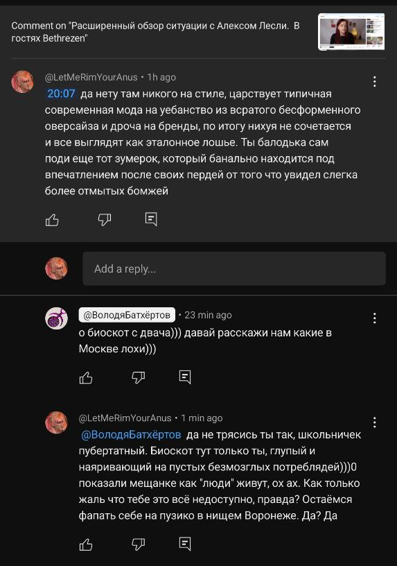 Расскажу наиболее забавные факты интернет-деятельности шиза: 1) живет он не во владимире, а в Воронеже. Работает действительно в аптеке и образование стало быть имеет соответствующее (что однако не вяжется с его рассказами о студенческих знакомстваз с 28-летней норвежкой и марокканцами). 2) Он вроде качается, но лоу-кики скорее всего пробивает только во влажных фантазиях. Я находил одну его фотку в сети - типикал гном. Реально рост метра полтора. Думаю инцелизм оттуда проистекает. 3) Машины и хаты у него нет, потому что зарплата 30к. Действительно копит на съеб в Тай, потому что там буряточки-писечьки лизь-лизь-лизь, однако никогда туда не эмигрирует, т.к..... 4) имеет судимость. За что хз 5) расширенный оргазм ничто иное, как ужиралово неизвестными колесами, вызываюшими мышечные спазмы. Возможно, спазмы мыщц тазового дна, мочевого пузыря и др. дают какой-то эффект, но после начала данных практик вовик сильно потек крышей. Сравнивая речь ранних и последних роликов можно очень четко это услышать