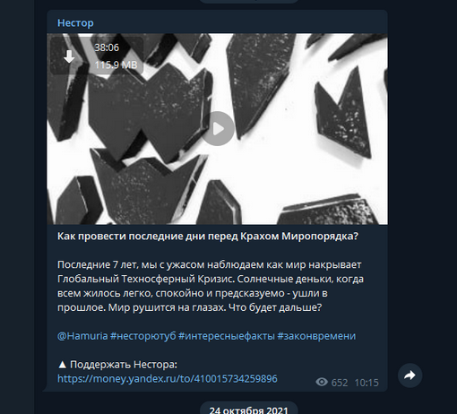 Внимание! Нестор зачистил канал, пропали все острые ролики. (Про ковид, глобальное потепление, крах мирового порядка и т.д) Качайте и сохраняйте из телеги пока не поздно, потом не нойте, что не успели сохранить базу Нестора... https://t.me/Hamuria