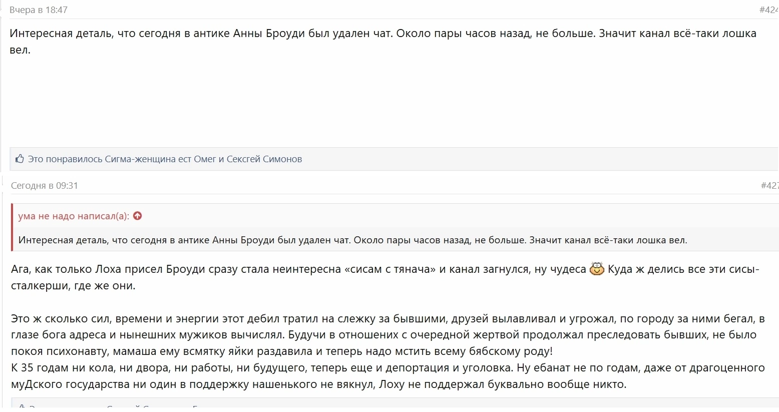 А, ещё помню был мудила-донатер, бля не помню никнейм, очень известный. Торчал на всех стримах когда была перхоть, и всегда заносил хорошие суммы. Пропал? Ещё помню дебила, который вроде как даже с перхотной встречался там где-то, но она его юзанула, унинизила публично, и кинула как собаку. Есть что-нить интересное про этих уебанов?