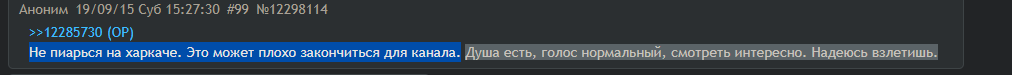 Кто-то тут хотел пенкину репортить, кароч >>1011597 35:05 можете жамкать "пожаловаться" с цитатами угрозы убийства и такого Еще видосов 5 таких и новый шедоубан, если кому нехуй делать и он хочет с нескольких аккаунтов - ПОСТОЙ, сначала смени айпи иначе спалится абьюз, хотя тебе могут ответить на репорт но вес его для робота будет 0.