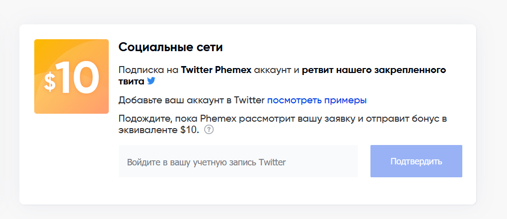 Получи 10$ на бирже Phemex за регистрацию ретвит