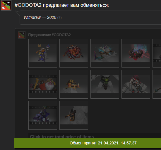 https://godota2.com/ REDEEM CODE: DROUET Бонус 100 монет (0.1 USD) На него можно лудить в рулетке, а дальше собирать daily gift, и продолжать. Либо же можно копить баллы, а потом их отыграть (на рулетке можно поставить на два цвета). Условие для получения гифта - вступление в группу гд2 в стиме, поставить сайт в никнейм, каждый раз во время сбора. Ещё дают гифты за кс с праймом (тогда в доте может быть меньше 500 часов). Если не даёт бонус, то, возможно, что у вас мало часов в доте (нужно от 500), вы скрыли аккаунт и сайт не видит активность (иногда не даёт собрать, если скрыты друзья), на аккаунте не было игр в доте (накрученные часы не пройдут), и скорее всего ноулимит аккаунты тоже идут мимо (нужен какой-никакой лвл).