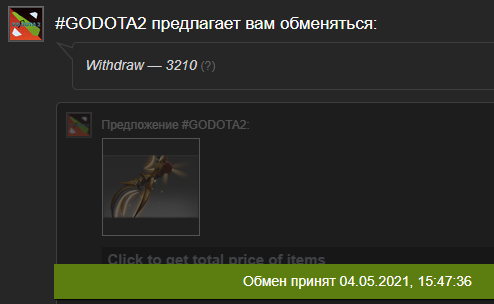 https://godota2.com/ REDEEM CODE: DROUET Непонятки с критериями для участия в программе бонусной, но нужно от 500 часов в доте, возможно лвл стима, акки с наабуженными часами лично у меня браковали. Я совсем недавно вернулся к этому сайту, предстоит разобраться с вопросом абуза его. Суть в бонусной сумме за код и сборе монеток в DAILY GIFT, дальше надо их отыграть и забрать что желаете, и на что хватает. Когда отыгрываете можно ставить сразу на красное с чёрным, но если выпадет зелёное, то всё потеряете. Когда-то был отличным сайтом с халявой по доте, но потом что-то случилось. Снова в строю, но лимиты на вывод подняли, но он остался без депозитов. Если раньше ежедневно можно было выводить имморталки, то сейчас нужно менять стратегию исходя из предпочтений. Т. к. у меня два аккаунта (было 3, остальные забраковало), то я коплю определённую сумму баллов, а потом переливаю её одновременными ставками.