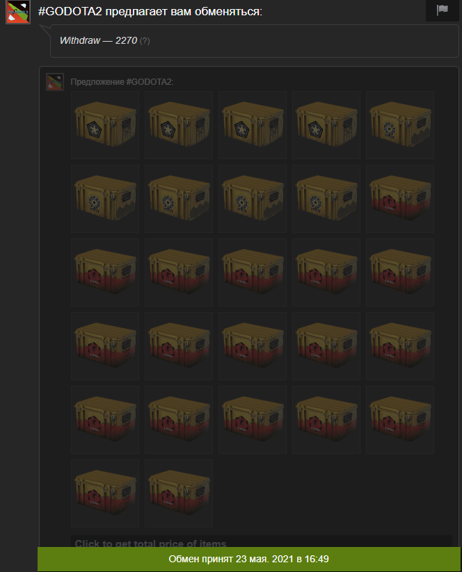 >>15983 https://godota2.com/https://godota2.com/ REDEEM CODE: DROUET Бонус 100 монет (0.1 USD) На него (бонус) можно лудить в рулетке, а дальше собирать daily gift, и продолжать. Либо же можно копить баллы, а потом их отыграть (на рулетке можно поставить на два цвета). Условие для получения гифта - вступление в группу гд2 в стиме, поставить сайт в никнейм, каждый раз во время сбора. Ещё дают гифты за кс с праймом (тогда в доте может быть меньше 500 часов). Если не даёт бонус, то, возможно, что у вас мало часов в доте (нужно от 500), вы скрыли аккаунт и сайт не видит активность (иногда не даёт собрать, если скрыты друзья), на аккаунте не было игр в доте (накрученные часы не пройдут), и скорее всего ноулимит аккаунты тоже идут мимо (нужен какой-никакой лвл).