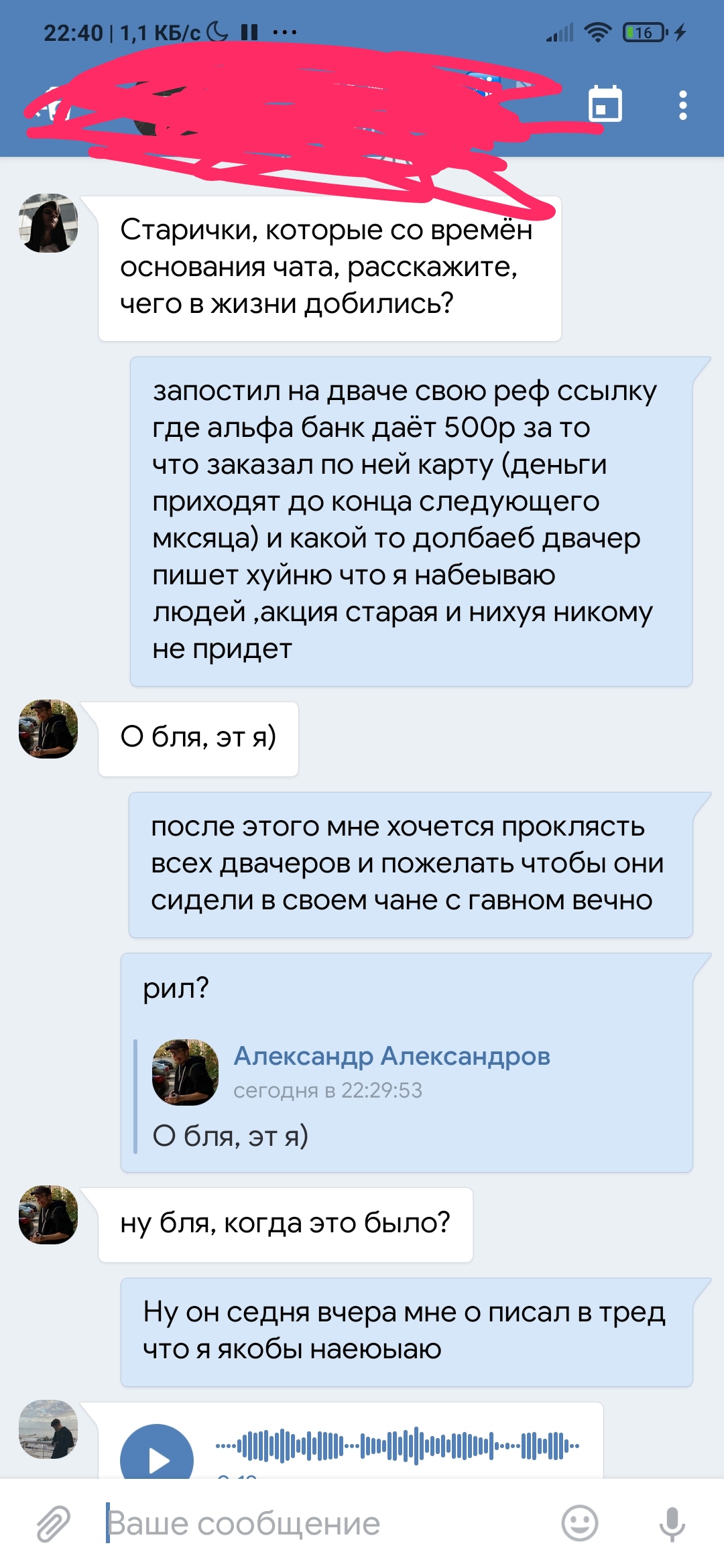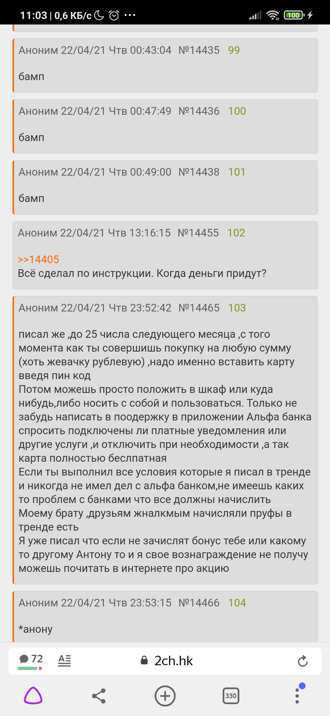 это же гораздо легче ( оклеветать , обосрать другого анона и сделать ему хуйню ) чем потратить пару минут ,ну максимум пять чтобы загуглить информацию самому или банально позвонить беслпатно на альфа банк в поддержку