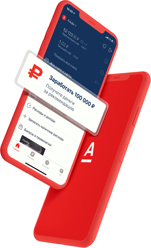 для того чтобы получить реферальную ссылку которую можешь кидать друзьям нужно совершить покупок на 3000 р (ее дают не всем почему то) ,и крч после того как совершишь на эту сумму покупки на главном экране в приложении Альфа банк появится кнопка "Заработать 100000, на нее тыкаешь и там будет ссылка) При любых вопросах кстати можешь обратиться в поодерку и написать в чате в приложении там все ответят,но будут проблемы обращайся чем смогу тем помогу
