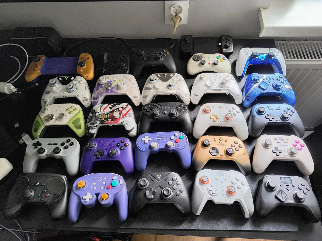 И геймпады Switch - это, наверное, на данный момент, самая распространенный тип геймпадов. Практически нигде нативно не поддерживаются, нужны прослойки типа Steam и DS4Windows. Функционал бедней чем у геймпадов Playstation, в режиме подключения по Bluetooth геймпад будет подключен к компу в режиме procontroller от Nintendo Switch. Чревато это тем, что в протоколе Свитча нет такого понятия как аналоговые курки, то есть работать они будут как кнопки без аналогового ввода (не будет понимать полумеры типа недожатого или нажатого на две трети курка). Да и стики в таком режиме становятся менее отзывчивыми. Но зато есть гироскоп Сам Pro controller имеет лишь один серьезный плюс - время жизни батареи, которая, по сравнению с тем же Dualsense, живет просто вечность, потому что геймпад не обладает обилием свистелок-перделок. К сожалению стики у него настолько позорные, что могут через месяц начать дрифтить. Почему же они популярны? Потому что на данном протоколе делают просто уйму геймпадов китайские братушки. Поэтому имеется просто огромный выбор геймпадов под любой кошелек и вкус. Тут вам и геймпады со стиками и триггерами на эффекте Холла (длительная защита от дрифта) и дополнительные программируемые кнопки, работа сразу с ПК и Свитчом, геймпады могут в себе иметь протокол Xbox, то есть позволяют играть без прослоек в игры, в которых поддерживается только геймпад от microsoft, также в таком режиме аналоговые триггеры будут работать полноценно. Ну и нужно понимать, что нашему глазу у него непривычная раскладка, но там все зависит от вашей настройки.