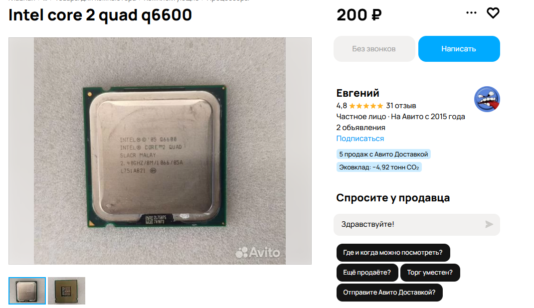 В 2019м купил старый системный блок с процессором Пентиум Д, 2 ядра по 2.7 ГГц, 4 ГБ DDR3, SATA HDD 120 ГБ, GeForce 9600, медный кулер из нулевых, мать какой-то асус. Шиндошс 7. Цена 5к. Купил с одной единственной целью — протестировать видиокарту RTX 2060.