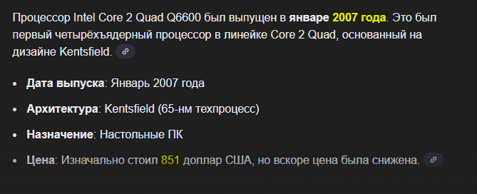 Корпус выкинул, потому что большой и неудобный. GeForce 9600 вынул. RTX 2060 потом перепродал в 2021 году по тройной цене. А в этот комп вставил GT 1030 чтобы просто смотреть ютуб в 4к. Пентиум Д заменил на i7-2600. Старый кулер заменил на новый тихий. 4 гига памяти заменил на 16. Вставил вай-фай 5G вместо провода. HDD заменил на SSD NVME 500 ГБ (через переходник PCI-e) + серверный HDD WD Red на 2 ТБ. Поставил Шиндошс 11. Потом сгорела мать. Купил новую, произведённую в 2024 году. Там уже был встроенный слот NVME. Старую клаву заменил на новую механику. Старую мышь — на новую беспроводную игровую 10к герц. В 2025м комп стал сам по себе выпадать в синий экран и перезагружаться. Заменил блок питания. Сегодня поменял старый монитор на новый HDR, 240 герц.