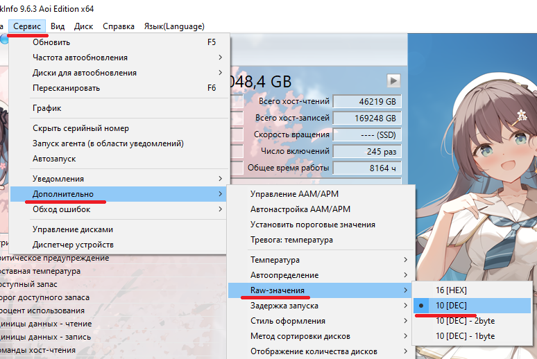 При вопросах о состоянии ссд по смарту переключай программу Crystal DiskINFO в десятичный режим! (ОП-пик №2)!