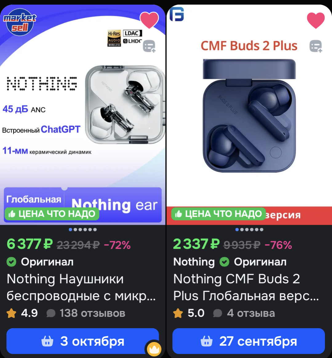 Аноны, нужны недорогие беспроводные наушники В шапке как бестбай рекомендуют: >CMF Buds 2 Plus - отличная батарейка на 8+ часов и хороший шумодав, вполне нормальный звук. Примерно от этой точки не будет существенных апгрейдов по всем характеристикам суммарно. >Помимо списка, можно посмотреть на будущие модели Nothing и CMF. Нашёл на озоне их, там CMF Buds Pro 2 по цене почти как CMF Buds 2 Plus "Pro 2" же лучше, чем "2 Plus"? Там два динамика вместо одного и прочие флагманские нештяки