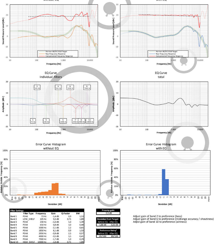 Preamp: -7.4 dB Filter: ON PK Fc 20 Hz Gain 2.3 dB Q 1.205 Filter: ON PK Fc 55 Hz Gain 5 dB Q 2 Filter: ON PK Fc 110 Hz Gain -4.0 dB Q 1.200 Filter: ON PK Fc 220 Hz Gain 7.98 dB Q 1.3 Filter: ON PK Fc 330 Hz Gain 1.1 dB Q 2.000 Filter: ON PK Fc 540 Hz Gain -4.5 dB Q 2.000 Filter: ON PK Fc 660 Hz Gain 5.0 dB Q 2.000 Filter: ON PK Fc 1800 Hz Gain 1.6 dB Q 2.000 Filter: ON PK Fc 2600 Hz Gain -1.6 dB Q 2.000 Filter: ON PK Fc 3900 Hz Gain 5.0 dB Q 1.000 Filter: ON PK Fc 5023 Hz Gain 1.9 dB Q 2.772 Filter: ON PK Fc 5800 Hz Gain -5.0 dB Q 4.000 Filter: ON PK Fc 9400 Hz Gain 1.7 dB Q 1.315 Filter: ON HSC Fc 9750 Hz Gain 3.8 dB Q 0.707 Filter: ON PK Fc 8730.32 Hz Gain 1.9 dB Q 1.5306 Filter: ON PK Fc 13213.9 Hz Gain 2.4 dB Q 0.8686 Filter: ON PK Fc 2992.47 Hz Gain 1.7 dB Q 1.4752 Filter: ON PK Fc 9500 Hz Gain 0.3 dB Q 8