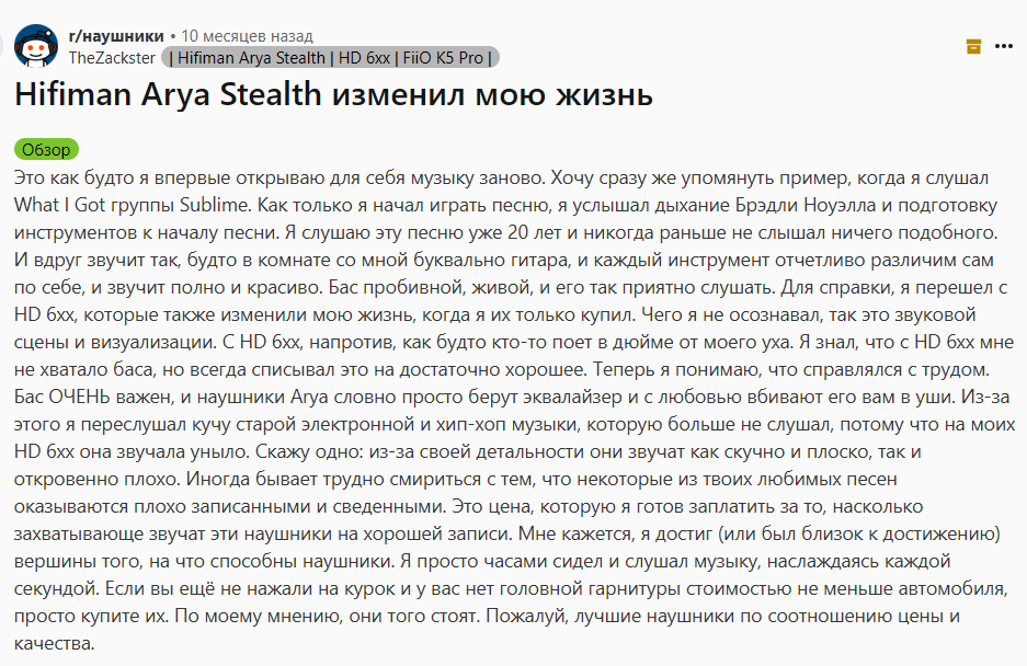 Изначально думал брать audio-technica ath-r50x, как здесь посоветовали. Другой человек же сказал, что это говно, а я задумался. Решил почитать реддит еще раз и встретил упоминание наушников HIFIMAN Arya. Очень хвалят. Я так понимаю, это топ уровень, лучше упомянутых r50x? Мне нужно чтобы басы были, чувствовался объем в фильмах и все такое. Они всего 32Ом, т.е им не нужен ЦАП, от встройки норм?