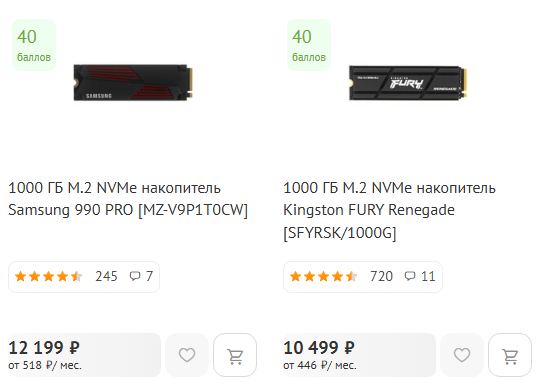 Сейчас стоит м480 про 2тб как системный. В соседнем компе есть 1тб 970эво, но из соседнего доставать не хочется, а то соседний комп перестанет быть полноценной рабочей лошадкой. Думаю ещё один м480про 2тб докупить в новый комп, на 4тб теперь денежек нету. Всё никак уже не делю не могу определиться, никаких ведь минусов у меня не будет от такого решения, да и "лучше" особо я и не куплю. На материнке 3 штуки м2 ссд слотов.