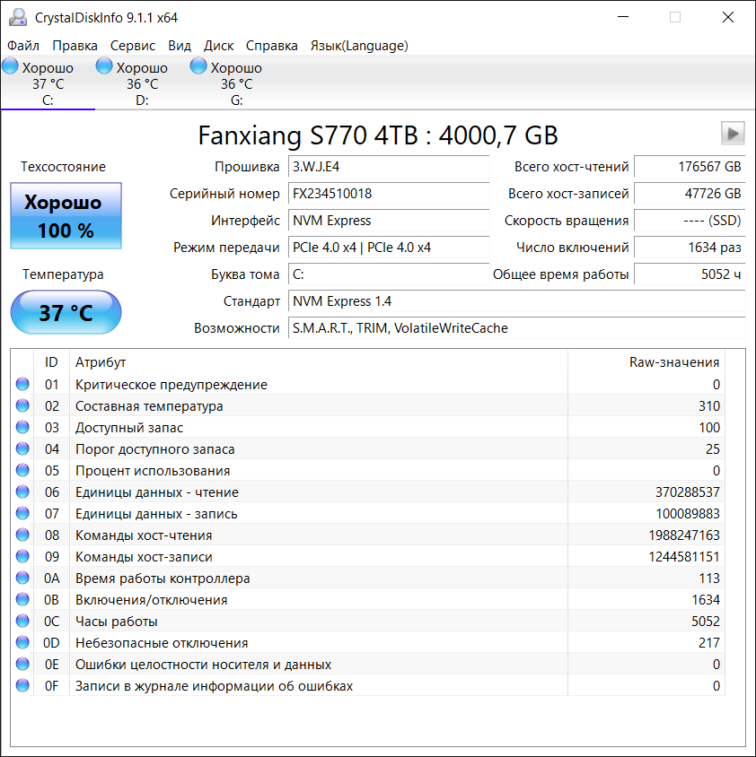 >>7544998 > Покажи Crystal Disk Info, все атрибуты. Не нашел только как все атрибуты отобразить. При запуске программы было звуковое уведомление. Видимо не все хорошо все же.