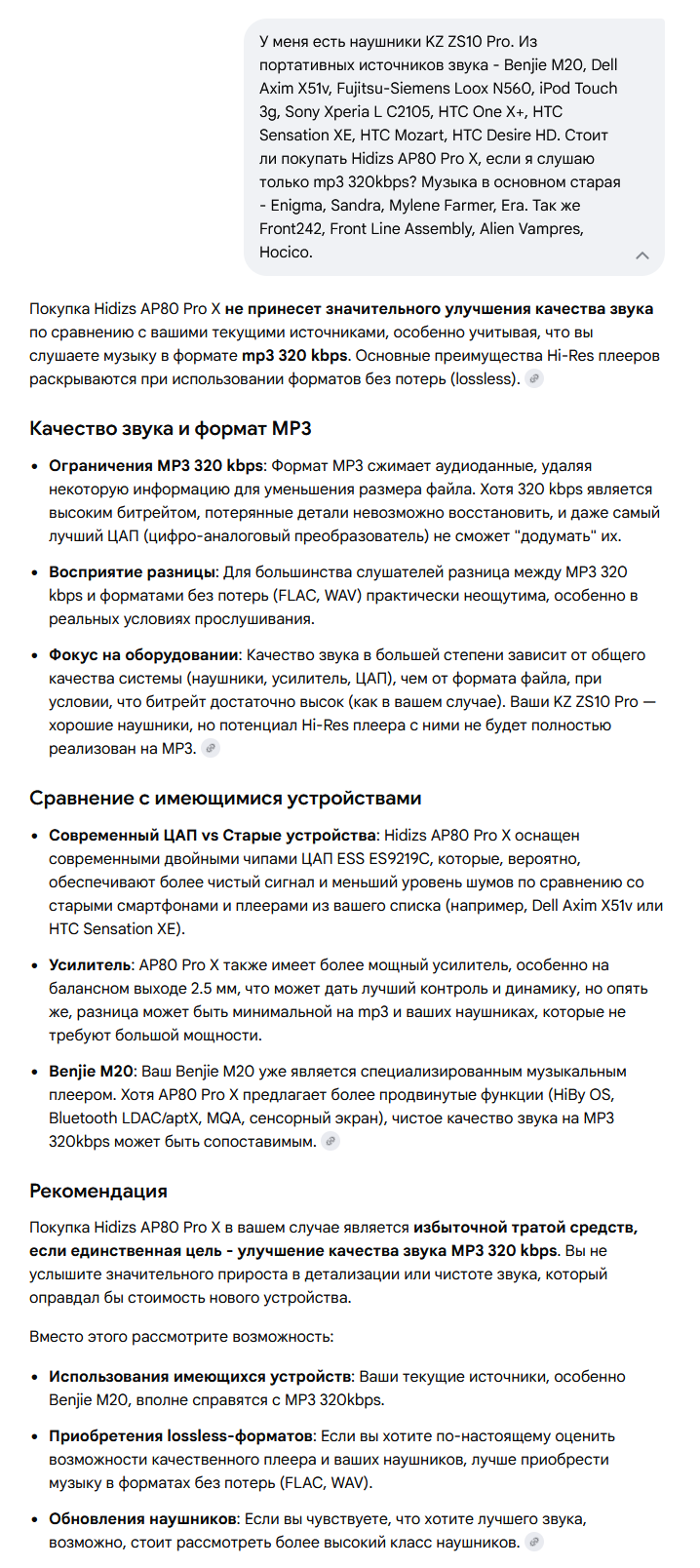>>7645608 Тебе нейронка самое важное не сказала - смартфон портит звук даже на mp3 из-за системного микшера android и принудительного ресемплинга в 48 кГц !