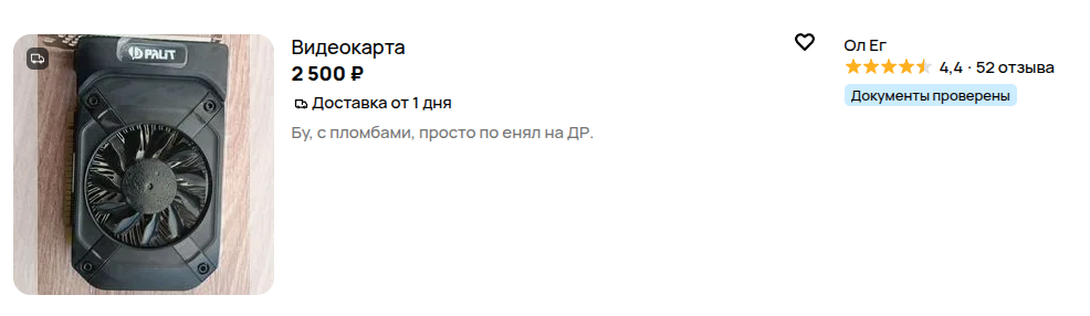 дарова, бомжи. хочу собрать комп из говна и палок всяких, выбор видео пал на легендарного рыксыча 580, который так любят в нищесегменте. и вот в чём вопрос у меня, он есть на всяких площадках типа озона есть в виде рефабов китайских, а есть на лохито от дохуя умных, которые уверяют, что стоял дома @ не майнил а потом в профиле ещё штук 10 сделок с видюхами. чё из этих стульев лучше? с лохито дешевле раза в 2, чё-то брать рефаб за 10 тонн с озона это так себе звучит.