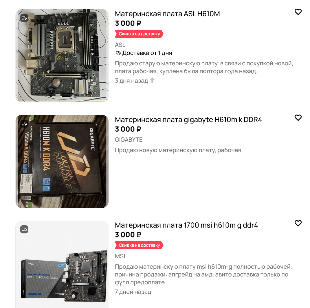 Не нужно сравнивать б/у комплектуху с новой. ай3 "вотпрямщас" можно взять за 3.5, объявления за 3к зарезервированы, но не думаю что будет сложно поторговаться и забрать за 3к. С мамками та же тема.