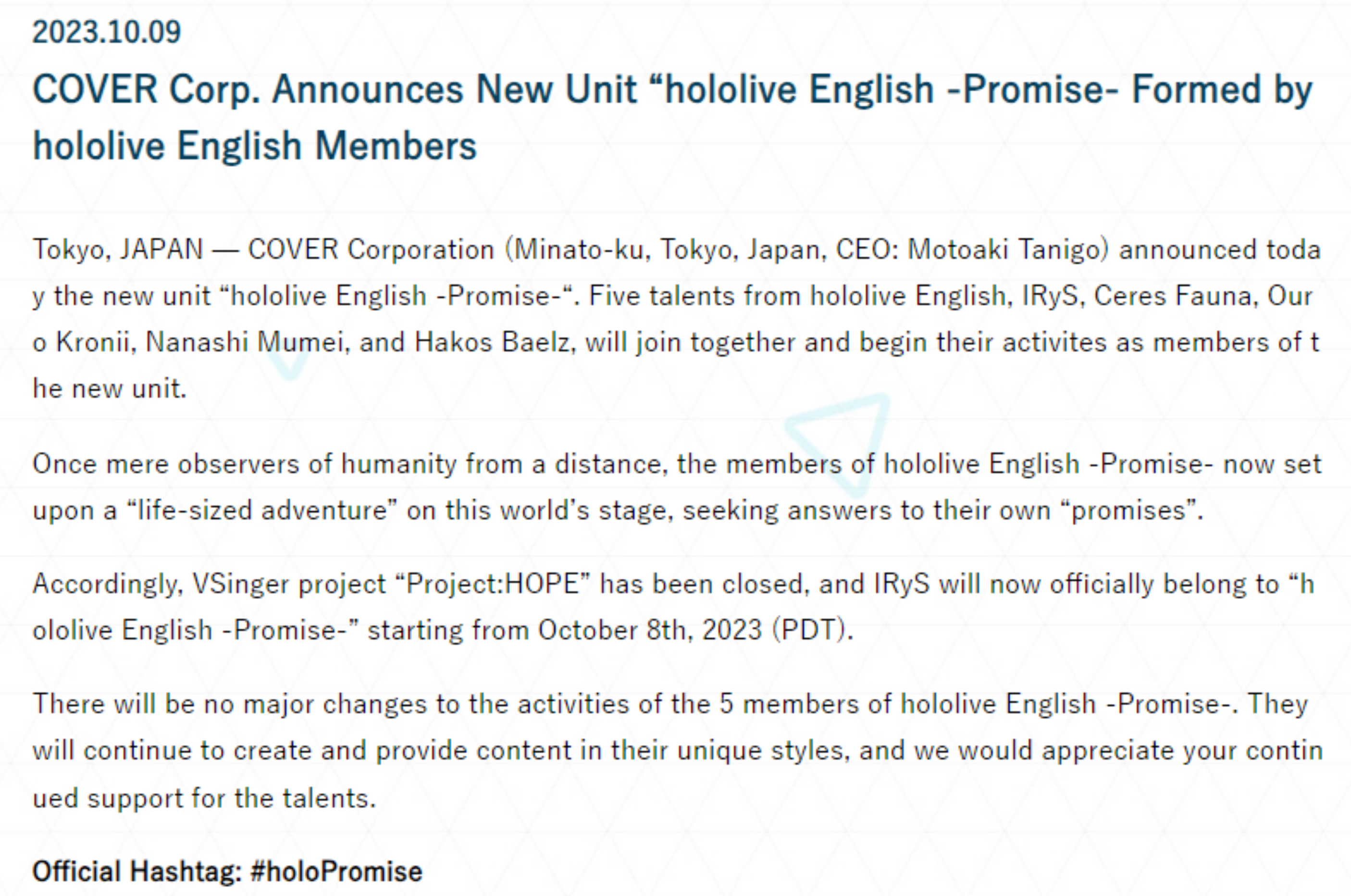 Ну и В-шоджо единственное крупное ЕН агенство, если ты вылетел из ХолоЕН или НиджиЕН, то тебе дорога только В-шоджо, либо становиться инди. Есть конечно попробовать в Айдол - но это агенство все-таки уровнем пониже.