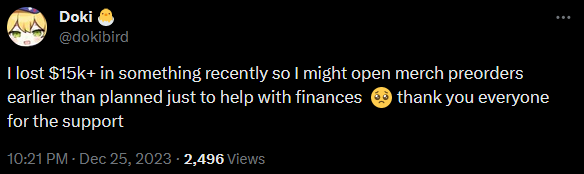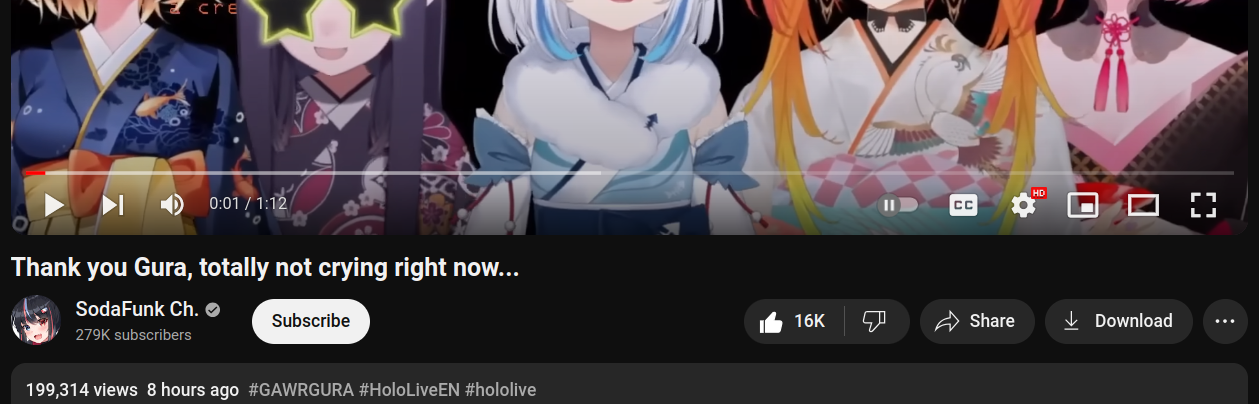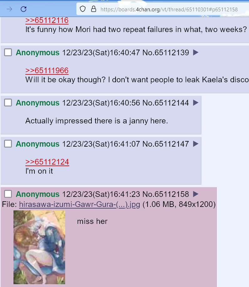 Если Гура уйдет из Холо, то про стримы можно вообще забыть. Тут ее хоть какие-то контрактные обязательства сковывают и заставляют раз в полгода поднимать жопу, какие-то клипы совместные выпускать, коллабы устраивать. А когда уйдет в свободное плаванье, то вообще забьет хер на стримы и мы натурально ее больше никогда не увидем.