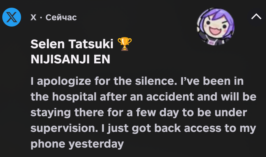 Ну, кажись Селен пездец. Она должна была быть на первом стриме холоадвента с мужиком. Но. Нет. И какой то спешл энаунсмент 30ого мы, видимо, не увидим.