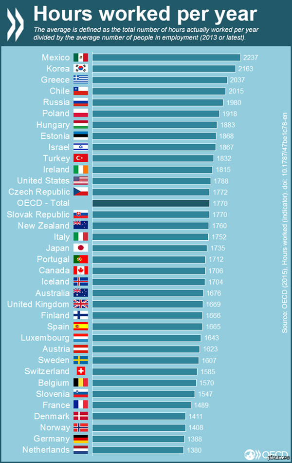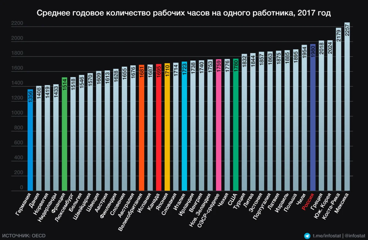 >>347516 >Возможно берут несколько компаний и спрашивают среднее по больнице Просто компании могут сказать, что у них стандартные 8 часов (или сколько принято в Японии), а на деле может быть немного больше. Поэтому вряд ли такие данные будут в серьёзной статистике использовать. >ведется полный отчет в гос бюрократии, что уже более логично Логично, только обмануть всё равно можно, думаю. Но тут хотя бы OECD может сказать "ничего не знаем, это официальные данные". >А откуда у тебя уверенность, что в Японии работают по 16 часов в сутки? У меня такой информации нет. Я просто мимо шёл, увидел графики и решил поинтересоваться, как эти данные собирали. Так-то я тоже читал всякие страшилки вида "в чисто японской компании уходить раньше босса нельзя, и пока остальные работают, тоже нельзя, а то плохо смотреть будут" и всё такое, и поэтому все сидят до 10 вечера. При этом рядом пишут, что слишком быстро работать тоже якобы нельзя, а то тоже будут косо смотреть за то, что выделяешься, потому что японцы работают медленно. Но пишут это не японцы, поэтому особой веры лично у меня нет. Но и полностью отбросить тоже не могу, с другой стороны.