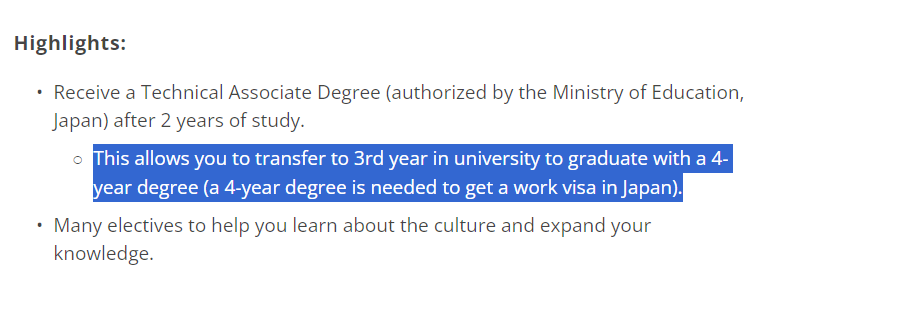 >>481104 >Ну уверен, что понимаю, зачем он мне. Есть профильное высшее образование, есть года опыта. В чем смысл в колледж идти? Затем что тебе в любом случае переучиваться на японском даже если ты всю учебную программу знаешь. Кстати, забыл упомянуть - там есть одна языковая школа при айти колледже "IT College Okinawa", через них ты можешь скипнуть вообще вузик, потому что после получения диплома их колледжа ты можешь сразу идти работать по специальности. >То есть все истории о том, что только с пендоским приходили на работу - всё фэк? Скорее фейк чем правда, знание инглиша там приветствуется, но не без японского, ну либо там его кто-то порекомендовал из знакомых, но они об этом умолчали. Тебе в любом случае надо язык знать хотя бы на уровне N3. Лучший вариант в твоём случае это поступить в языковую при айти-колледже, т.к. там ещё будут уроки по специальности и в конце тебе выдадут диплом.
