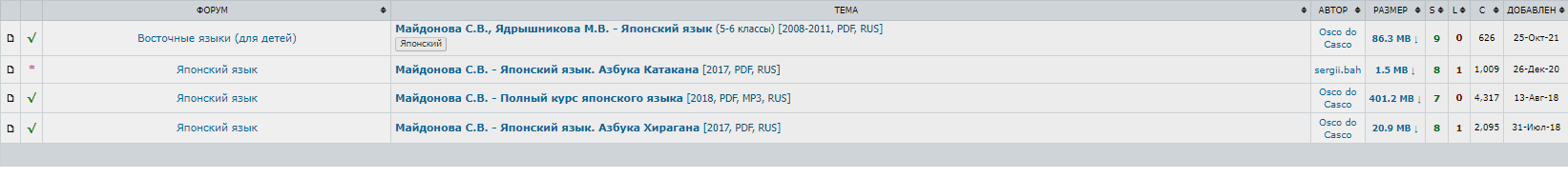 >>430226 Он там не найдет этот учебник. У меня полная коллекция всех возможных русскоязычных учебников, которые можно слить бесплатно, и от госпожи Майдоновой там имеется только это: >Майдонова С.В., Ядрышникова М.В. - Японский язык (5-6 классы) [2008-2011] >Майдонова С.В. - Полный курс японского языка [2018] >Майдонова С.В. - Японский язык. Азбука Катакана [2017] >Майдонова С.В. - Японский язык. Азбука Хирагана [2017] Остальные ее книги в инет не выкладывались.