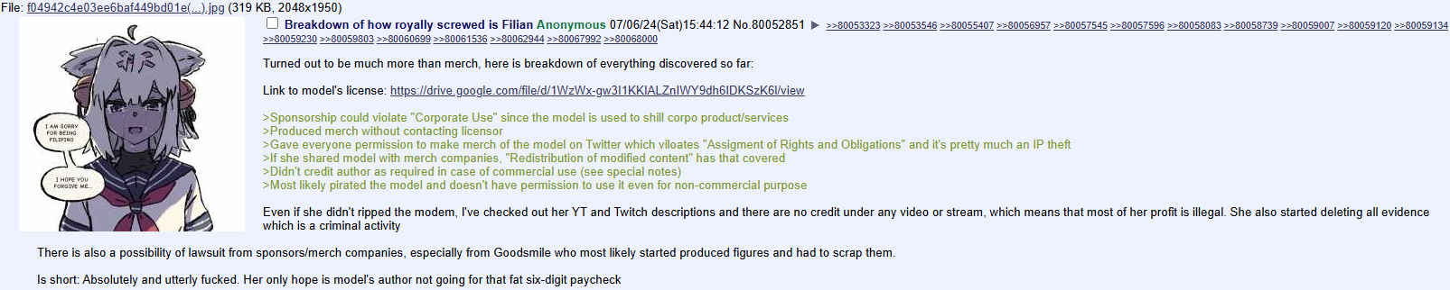 >>439497 Ну хуй знает. Вроде для анимаций по гейшиту официальное разрешение не нужно, это ж пародия. А тут прецедент, дальше будет хуже, на каждый чпок налетят правобарыгы и начнут судами ебать. Да из Мелоди войс актрис как земля.