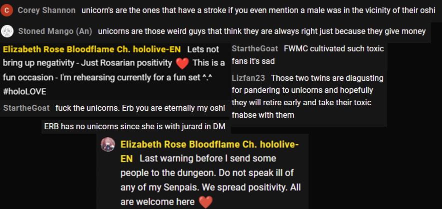 Здоровается с каждой залетухой по имени. @ Чат полон завсегдатаев вахтовиков на гейткипе. @ Зрители требующие скучных чиловых стримов по строительству в майнкрафте/рисованию/вочэлонгу в итоге растекаются по мультистриму. @ Чубе нечего рассказать на чиловых стримах, а на совместных просмотрах молча сидит и ничего не комментируют, в конце просто прощается без какой либо рецензии @ Зазывает в дискорд. @ В чате гиперактивный меченосец. @ После открытия мемберки относится к серым никам, как к людям второго сорта. @ Намеренно камвхорит на основе. @ Караоке/зацудан/АСМР каждый блядский божий день. @ Вентит на стримах проблемами со здоровьем. @ Выпускается, дебютирует.
