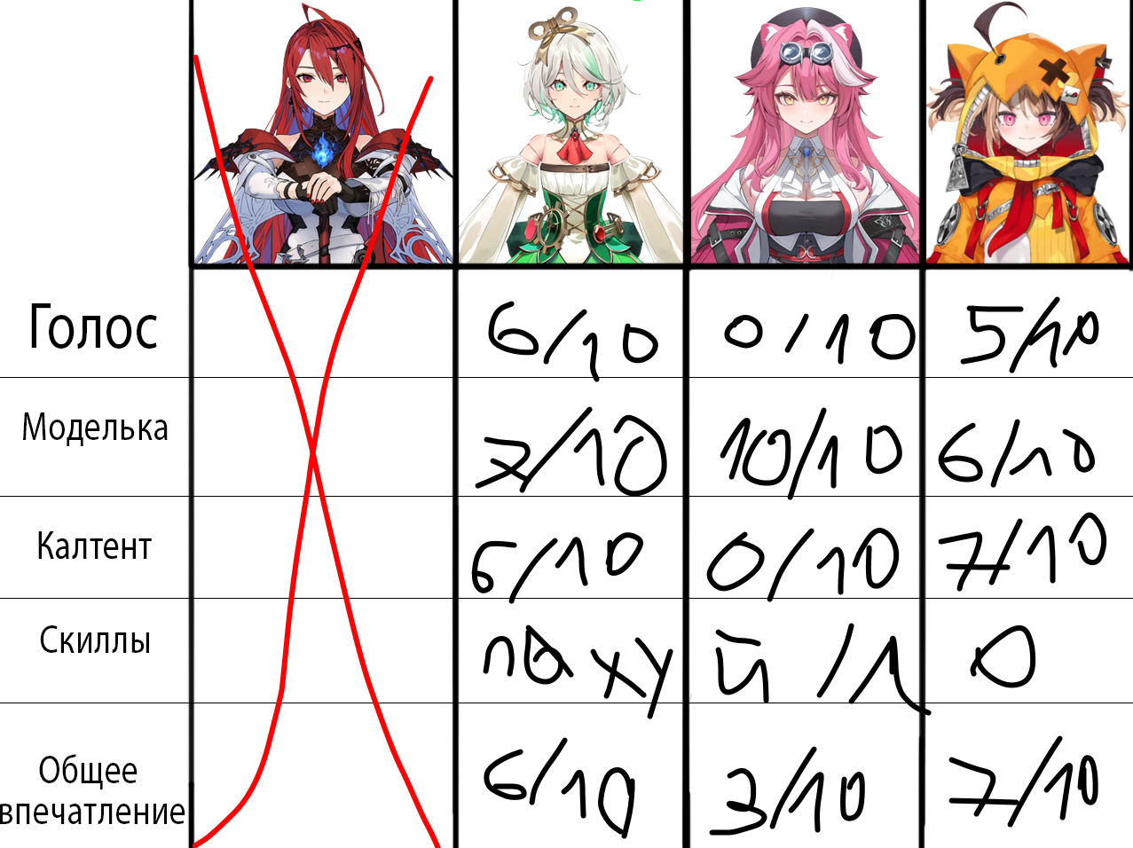 Походу я каким-то неведомым образом стал симпом розовой хуйни. ХЗ как это произошло, это было не осознанное решение. Дико цепляет её непосредственность и эмоциональность. Максимально нормисная. Красная хуйня хорошо поёт. Приятно слушать. Зелёная какая-то черезчур хабалистая, это иногда отталкивает, иногда забавно. Жёлтая мимо меня. Голос это мучение хуже куриного. Хотя, может быть с интересными играми ещё подтянется. Но пока нет.