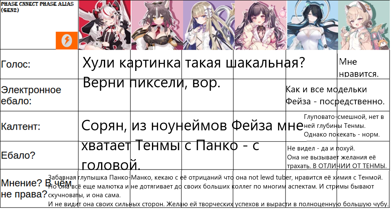 Я её как-то особо даже не выделяю среди остальных холовитуберов. По сути у неё из уникальных черт только напористость и мультиязычность, хотя последнее уже не такая уж и редкость даже в холо ен.
