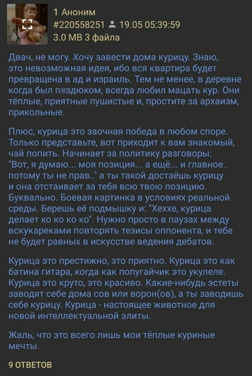 >>454809 >Алсо, курофаг, если решишь вскрыться, то пише не Курице Там рофл в том что курице нет смысла писать потому что кто "тру фан" она будет решать делегацией ближайших подсосов и по наличию ошимарки, лол. Вообще кек что она высрала какой-то пост про то что шизы могут ей написать