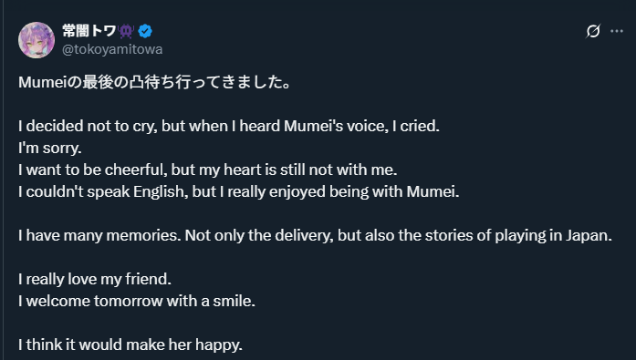 >>457316 На фоне охрипшей от двух стримов в день Мумей. Видимо она уже давно мертва как перс Гура, вот и всё. Ну или ты с фанами уже на новой площадке через день после выпуска VS ты с болью в сердце действительно прощаешься с любящими тебя фанатами и уходишь в тишину