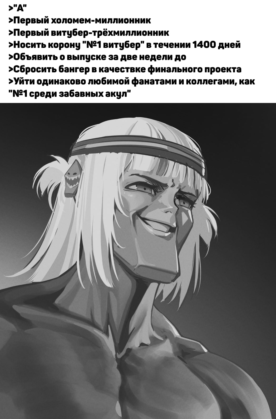 Впервые послушал и посмотрел последний трек Гуры (без клипа он представляет ровно 0 ценности, даже учитывая, что это Гура). Как я понял из содержания + контекста, это должен был быть лучший нот-лайв перформанс Холо с момента, когда Гура стала лицом компании. Почему всё так хуёво? Это проблема конкретно Холо или весь витубинг настолько плох в плане музыки?
