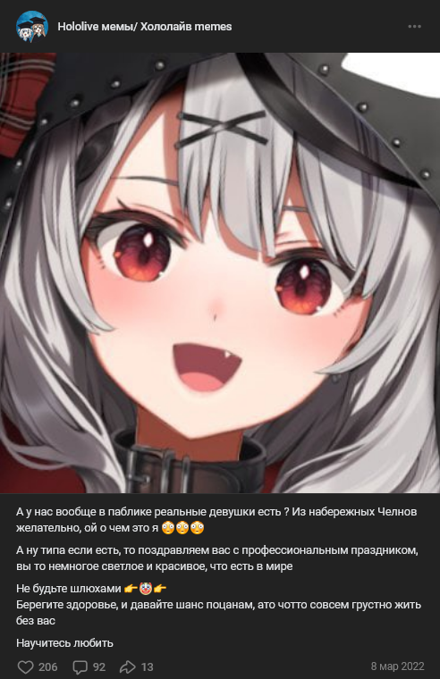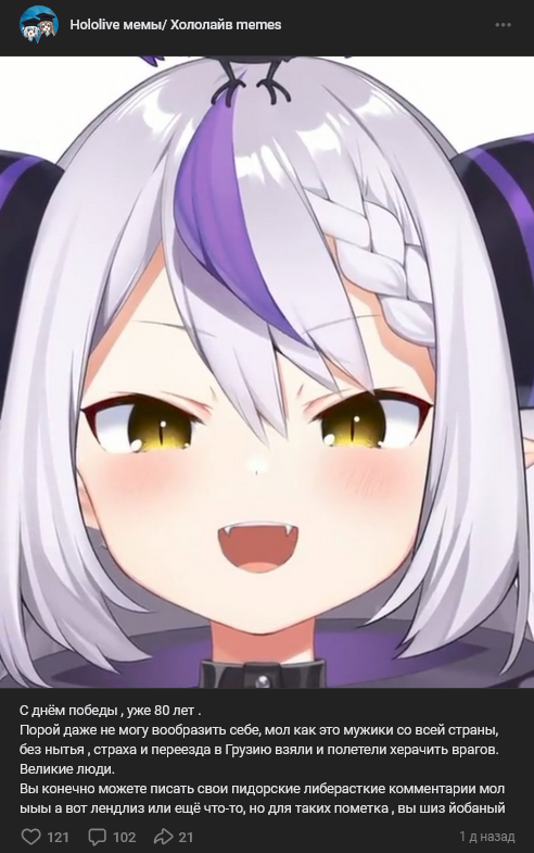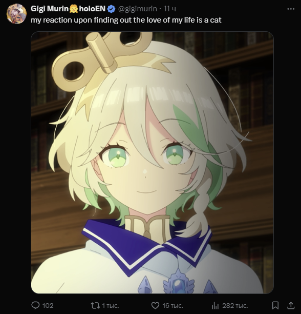 Она из образа выходит крайне редко (по крайней мере на караоке-стримах), и этим раздражает, хочется видеть реального человека а не кривляющийся образ. В этом плане мне другие Холо-певички больше импонируют. Они не кривляются как ебанутые, после каждой песни. Давай расскажи мне что она не такая на игровых стримах, сорян, я это говно не смотрю, потому что как стример Лизка невероятно скучная.