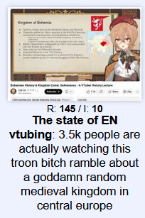 У нас было 2 крупных агентства, 75 индюх, 5 выпускниц, Фейз Коннект и целое множество твичешлюх всех сортов и расцветок, драматюберы, а также форч, азилум, ферма, тред на дваче и 2 дюжины клипмейкеров. Не то чтобы это был необходимый запас для срача, но если начал смотреть чуб, становится трудно остановиться. Единственное, что вызывало у меня опасение — это ручубы. Ничто в мире не бывает более беспомощным, безответственным и порочным, чем зрители ручуб. Я знал, что рано или поздно мы перейдем и на эту дрянь.