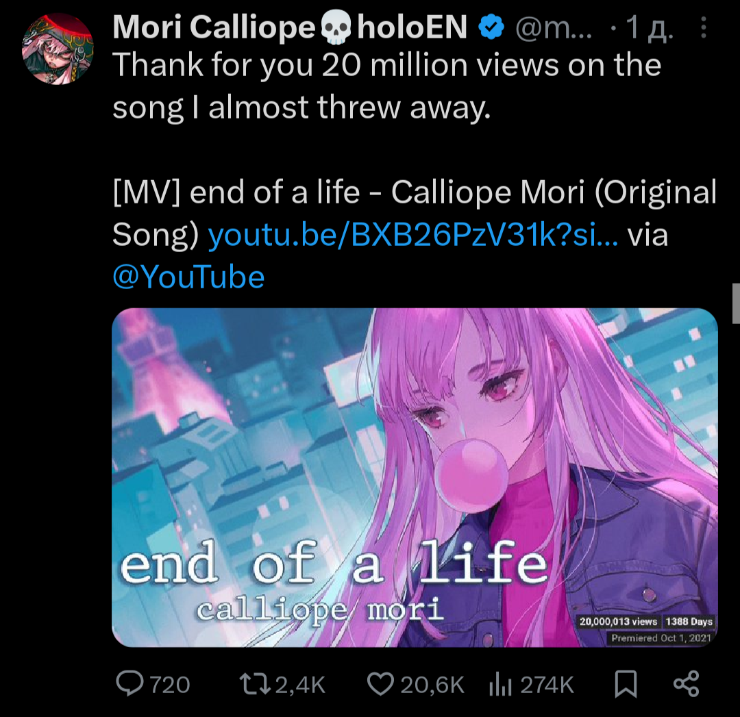 С Ними подрыв конечно неудивителен и понятен, но мне кажется, что это скажется на её карьере чуть менее чем никак. Возможно ещё и прецедент для остальных создаст. В прекращении лицемерия ничего страшного не вижу. Насчёт куколдизма тема более тонкая: понятно что айдолы должны быть типа дохуя пьюр и верджин, и что на многих чуб это тоже распространяется, и понятно также, почему. Но имхо реально прибабахнутых дрочеров трогающих экран не так уж и много осталось, хз может у японцев такая тема пораспространеннее, но за пределами - сомнительно. Мне кажется, что витуберы от айдолов отличаются примерно так же, как дом 2 от журнала мир звёзд - и там и там сплетни, драмы и жизнь в паблике, но в первом случае есть специфика буквального круглосуточного лайв-шоу, и интересно уже не столько наблюдать за творчеством, трансформацией образа и выходами в свет, сколько за общей динамикой сюжета, да ещё и с некоторой долей личного присутствия. Многим чубам в ответ на флирт вообще отвечают ew или pls respect my boundaries, ну какой тут куколдизм.