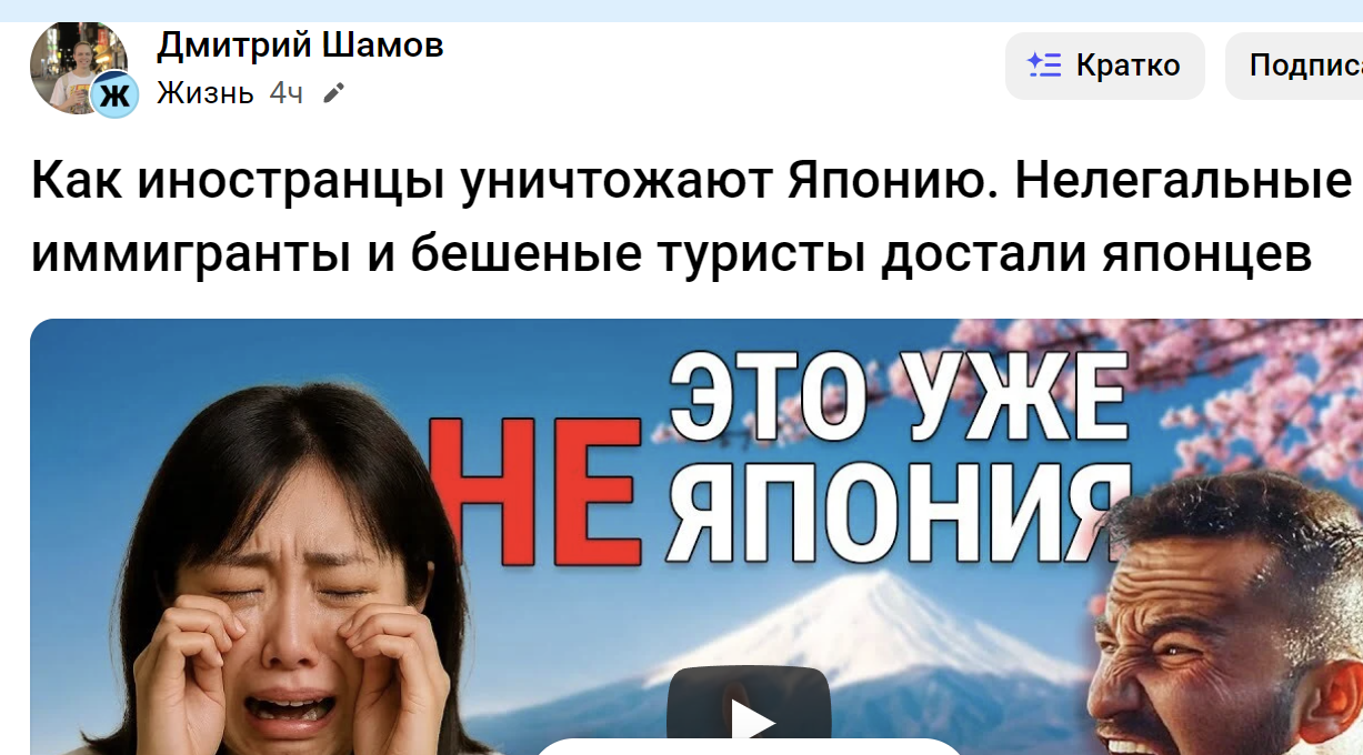Но всё равно ничего страшного ещё не случилось и не случится, до гейропы ещё далеко. Япония слишком шит, чтобы в неё летели толпы мигрантов, даже пособия по 2-3к евро нет.