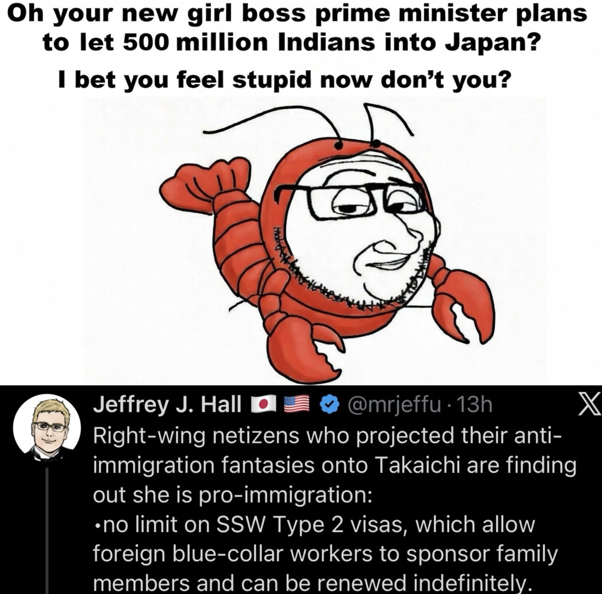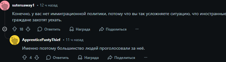 Конечно это не прям то что хотели правые и их очевидно прогрели Но реддиторы правы в том, что Такаячи нихуя не любит мигрантов и ХОТЯ БЫ чето предпринимает против них. Она хочет их использовать, выжать и высрать из страны потом