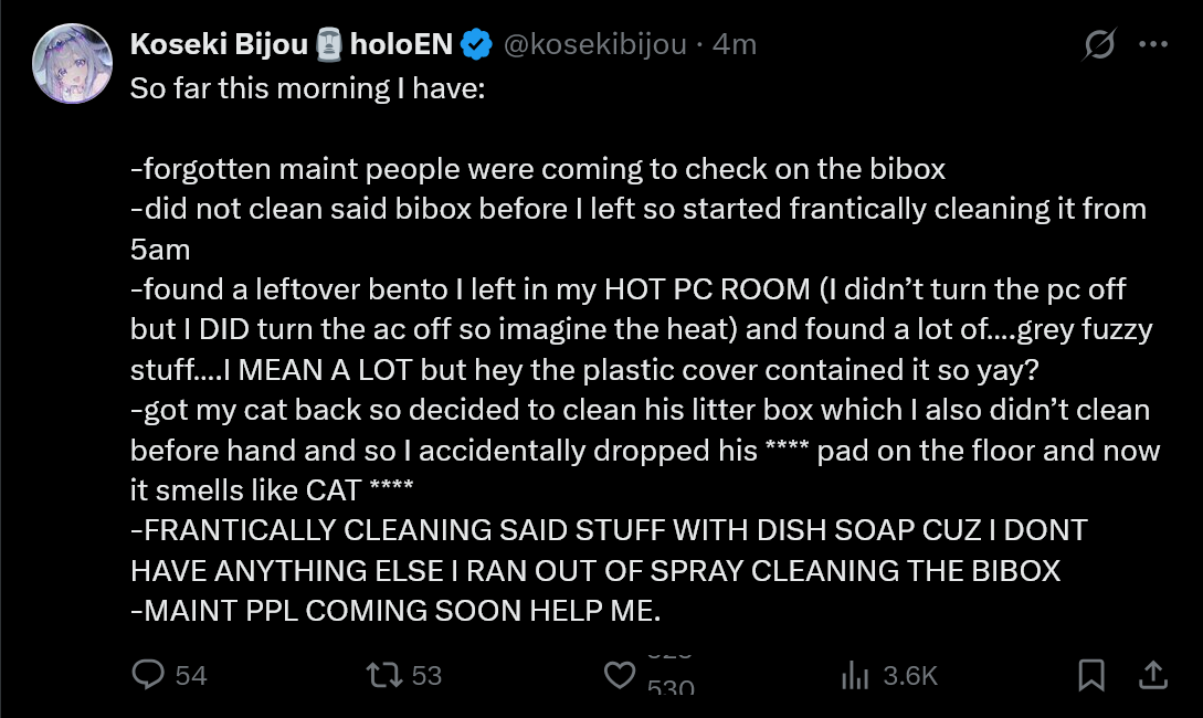 >демон звука Ленивая ноющая хуйня которая кладёт болт на стримы и придумывает отговорки чтобы не стримить, караоке стримов меньше чем у любой другой чубы, при том что джеилпёрды потужно форсят её как чуть ли не топ 5 сингеров вообще всего холо. >шиори Без комментариев. >cобаки Изначально мертворожденное говно т.к. они всегда хотели попасть в JP и работали на японскую аудиторию (SYA,GGN), которые зачем-то подали заявку в EN >камень Безыдейная инфантилка у которой из своего "контента" это скормленные ей педофилами из чата раковые мемчики и потужный гиммик геймерши, из-за того же чатика заботливо кормлящего её с ложечки дрочильным говном типа соулслайков и быдлофилда с колдой, очень интересно.