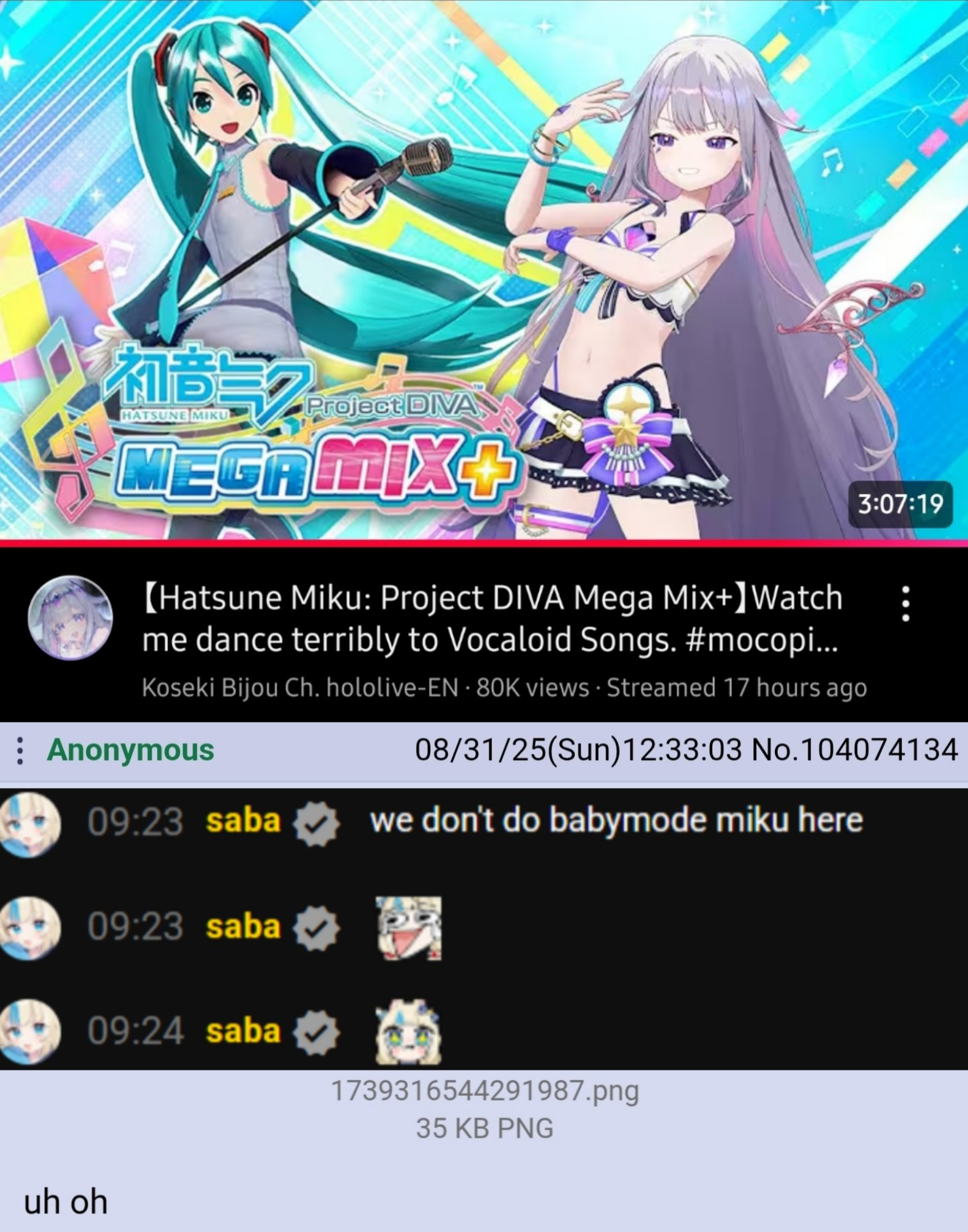 Не знаю за Бибу, но Мику Саба любит, играла в проджект диву еще будучи Сензавой. Сама ебашит в игру эту нехуево - то есть видно что задрот ее. Да и будучи Гурой просто рассказывала, прохладные как в детстве увидела Мику на сцене, и рассказывала маме, что сама однажды такой станет. Что что-то типа того и случилось когда в Хололайве начала выступать на сцене.